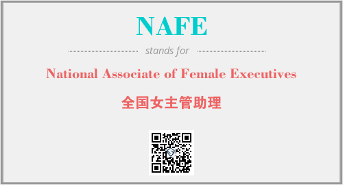 上述内容是“National Associate of Female Executives”作为“NAFE”的缩写,解释为“全国女主管助理”时的信息,以及英文缩略词NAFE所代表的英文单词,其对应的中文拼音、详细解释以及在英文中的流行度和相关分类、应用领域及应用示例等。