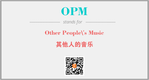 以上为Other People\'s Music英文缩略词OPM的中文解释,以及该英文缩写在英语的流行度、分类和应用领域方面的信息。