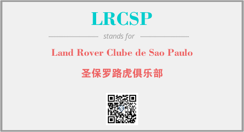 上述内容是“Land Rover Clube de Sao Paulo”作为“LRCSP”的缩写,解释为“圣保罗路虎俱乐部”时的信息,以及英文缩略词LRCSP所代表的英文单词,其对应的中文拼音、详细解释以及在英文中的流行度和相关分类、应用领域及应用示例等。