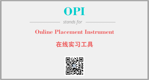 英文缩略词“OPI”经常作为“Online Placement Instrument”的英文缩写来使用,中文表示:“在线实习工具”。本文将详细介绍英文缩写词OPI所代表英文单词,其对应的中文拼音、详细解释以及在英语中的流行度。此外,还有关于缩略词OPI的分类、应用领域及相关应用示例等。