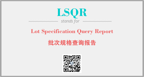 英文缩略词“LSQR”经常作为“Lot Specification Query Report”的英文缩写来使用,中文表示:“批次规格查询报告”。本文将详细介绍英文缩写词LSQR所代表英文单词,其对应的中文拼音、详细解释以及在英语中的流行度。此外,还有关于缩略词LSQR的分类、应用领域及相关应用示例等。