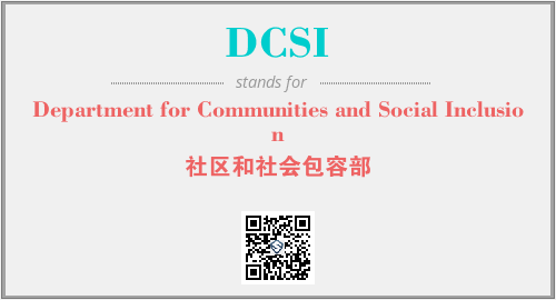 上述内容是“Department for Communities and Social Inclusion”作为“DCSI”的缩写,解释为“社区和社会包容部”时的信息,以及英文缩略词DCSI所代表的英文单词,其对应的中文拼音、详细解释以及在英文中的流行度和相关分类、应用领域及应用示例等。