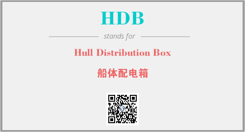 英文缩略词“HDB”经常作为“Hull Distribution Box”的英文缩写来使用,中文表示:“船体配电箱”。本文将详细介绍英文缩写词HDB所代表英文单词,其对应的中文拼音、详细解释以及在英语中的流行度。此外,还有关于缩略词HDB的分类、应用领域及相关应用示例等。