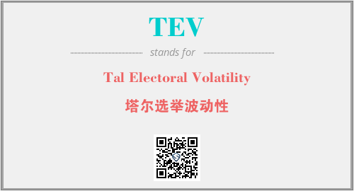 上述内容是“Tal Electoral Volatility”作为“TEV”的缩写,解释为“塔尔选举波动性”时的信息,以及英文缩略词TEV所代表的英文单词,其对应的中文拼音、详细解释以及在英文中的流行度和相关分类、应用领域及应用示例等。