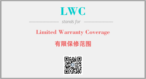 上述内容是“Limited Warranty Coverage”作为“LWC”的缩写,解释为“有限保修范围”时的信息,以及英文缩略词LWC所代表的英文单词,其对应的中文拼音、详细解释以及在英文中的流行度和相关分类、应用领域及应用示例等。