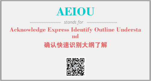 英文缩略词“AEIOU”经常作为“Acknowledge Express Identify Outline Understand”的英文缩写来使用,中文表示:“确认快速识别大纲了解”。本文将详细介绍英文缩写词AEIOU所代表英文单词,其对应的中文拼音、详细解释以及在英语中的流行度。此外,还有关于缩略词AEIOU的分类、应用领域及相关应用示例等。