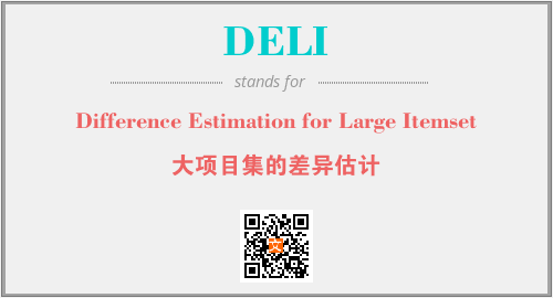 上述内容是“Difference Estimation for Large Itemset”作为“DELI”的缩写,解释为“大项目集的差异估计”时的信息,以及英文缩略词DELI所代表的英文单词,其对应的中文拼音、详细解释以及在英文中的流行度和相关分类、应用领域及应用示例等。
