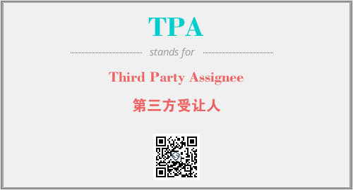 上述内容是“Third Party Assignee”作为“TPA”的缩写,解释为“第三方受让人”时的信息,以及英文缩略词TPA所代表的英文单词,其对应的中文拼音、详细解释以及在英文中的流行度和相关分类、应用领域及应用示例等。