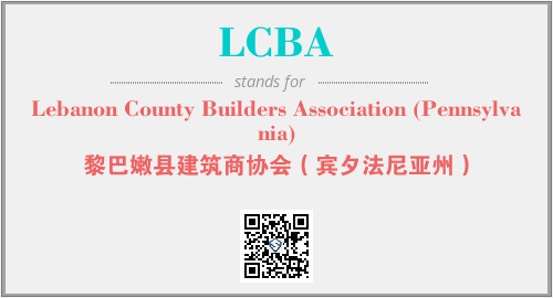 上述内容是“Lebanon County Builders Association (Pennsylvania)”作为“LCBA”的缩写,解释为“黎巴嫩县建筑商协会(宾夕法尼亚州)”时的信息,以及英文缩略词LCBA所代表的英文单词,其对应的中文拼音、详细解释以及在英文中的流行度和相关分类、应用领域及应用示例等。