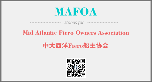 以上为Mid Atlantic Fiero Owners Association英文缩略词MAFOA的中文解释,以及该英文缩写在英语的流行度、分类和应用领域方面的信息。