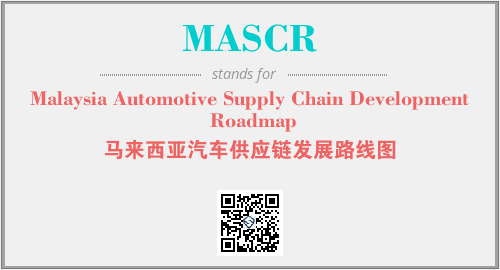 上述内容是“Malaysia Automotive Supply Chain Development Roadmap”作为“MASCR”的缩写,解释为“马来西亚汽车供应链发展路线图”时的信息,以及英文缩略词MASCR所代表的英文单词,其对应的中文拼音、详细解释以及在英文中的流行度和相关分类、应用领域及应用示例等。