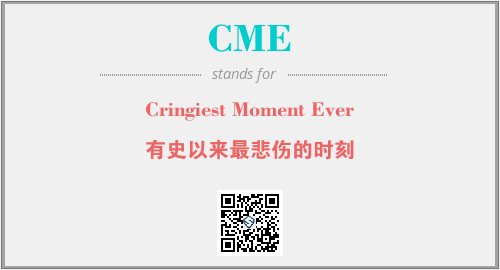 以上为Cringiest Moment Ever英文缩略词CME的中文解释,以及该英文缩写在英语的流行度、分类和应用领域方面的信息。
