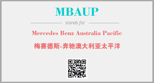 英文缩略词“MBAUP”经常作为“Mercedes Benz Australia Pacific”的英文缩写来使用,中文表示:“梅赛德斯-奔驰澳大利亚太平洋”。本文将详细介绍英文缩写词MBAUP所代表英文单词,其对应的中文拼音、详细解释以及在英语中的流行度。此外,还有关于缩略词MBAUP的分类、应用领域及相关应用示例等。
