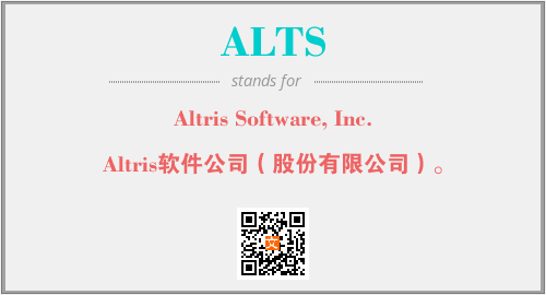 上述内容是“Altris Software, Inc.”作为“ALTS”的缩写,解释为“Altris软件公司(股份有限公司)。”时的信息,以及英文缩略词ALTS所代表的英文单词,其对应的中文拼音、详细解释以及在英文中的流行度和相关分类、应用领域及应用示例等。