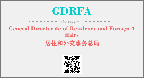 英文缩略词“GDRFA”经常作为“General Directorate of Residency and Foreign Affairs”的英文缩写来使用,中文表示:“居住和外交事务总局”。本文将详细介绍英文缩写词GDRFA所代表英文单词,其对应的中文拼音、详细解释以及在英语中的流行度。此外,还有关于缩略词GDRFA的分类、应用领域及相关应用示例等。