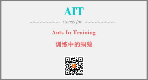 上述内容是“Ants In Training”作为“AIT”的缩写,解释为“训练中的蚂蚁”时的信息,以及英文缩略词AIT所代表的英文单词,其对应的中文拼音、详细解释以及在英文中的流行度和相关分类、应用领域及应用示例等。