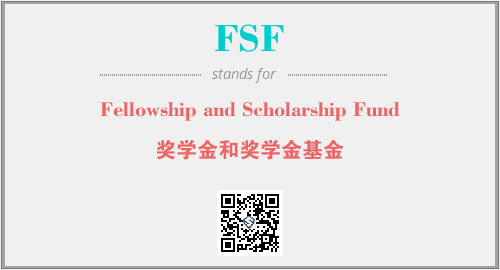 上述内容是“Fellowship and Scholarship Fund”作为“FSF”的缩写,解释为“奖学金和奖学金基金”时的信息,以及英文缩略词FSF所代表的英文单词,其对应的中文拼音、详细解释以及在英文中的流行度和相关分类、应用领域及应用示例等。