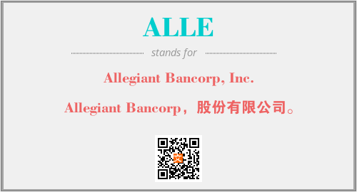 上述内容是“Allegiant Bancorp, Inc.”作为“ALLE”的缩写,解释为“Allegiant Bancorp,股份有限公司。”时的信息,以及英文缩略词ALLE所代表的英文单词,其对应的中文拼音、详细解释以及在英文中的流行度和相关分类、应用领域及应用示例等。