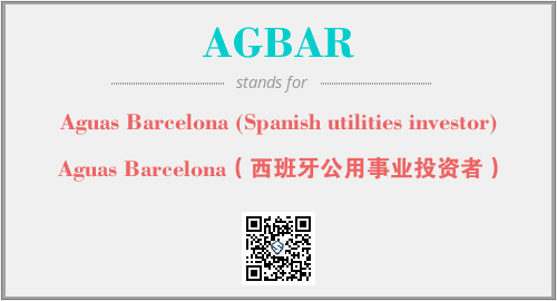 以上为Aguas Barcelona (Spanish utilities investor)英文缩略词AGBAR的中文解释,以及该英文缩写在英语的流行度、分类和应用领域方面的信息。