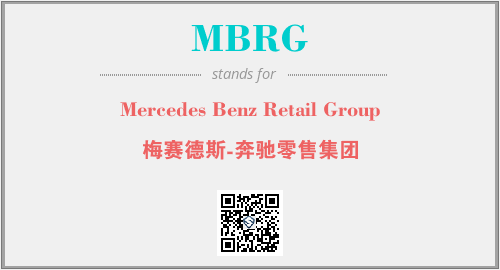 上述内容是“Mercedes Benz Retail Group”作为“MBRG”的缩写,解释为“梅赛德斯-奔驰零售集团”时的信息,以及英文缩略词MBRG所代表的英文单词,其对应的中文拼音、详细解释以及在英文中的流行度和相关分类、应用领域及应用示例等。