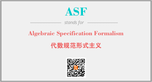上述内容是“Algebraic Specification Formalism”作为“ASF”的缩写,解释为“代数规范形式主义”时的信息,以及英文缩略词ASF所代表的英文单词,其对应的中文拼音、详细解释以及在英文中的流行度和相关分类、应用领域及应用示例等。