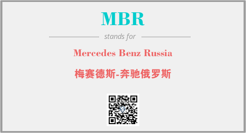 上述内容是“Mercedes Benz Russia”作为“MBR”的缩写,解释为“梅赛德斯-奔驰俄罗斯”时的信息,以及英文缩略词MBR所代表的英文单词,其对应的中文拼音、详细解释以及在英文中的流行度和相关分类、应用领域及应用示例等。