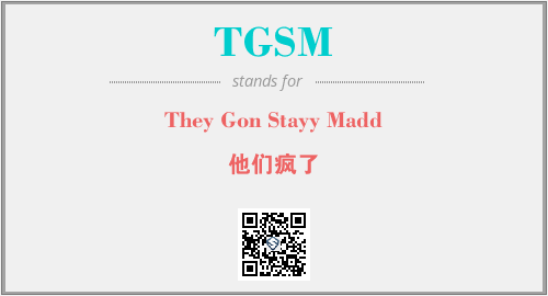 以上为They Gon Stayy Madd英文缩略词TGSM的中文解释,以及该英文缩写在英语的流行度、分类和应用领域方面的信息。