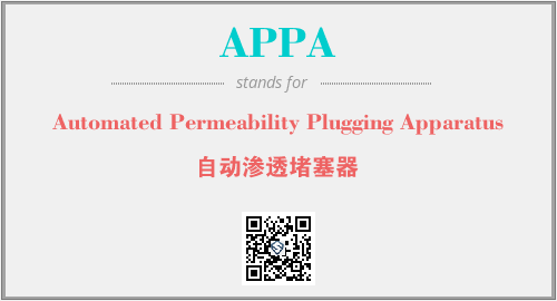 上述内容是“Automated Permeability Plugging Apparatus”作为“APPA”的缩写,解释为“自动渗透堵塞器”时的信息,以及英文缩略词APPA所代表的英文单词,其对应的中文拼音、详细解释以及在英文中的流行度和相关分类、应用领域及应用示例等。