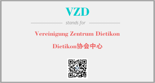 上述内容是“Vereinigung Zentrum Dietikon”作为“VZD”的缩写,解释为“Dietikon协会中心”时的信息,以及英文缩略词VZD所代表的英文单词,其对应的中文拼音、详细解释以及在英文中的流行度和相关分类、应用领域及应用示例等。