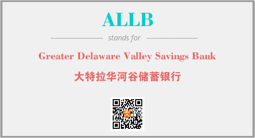 上述内容是“Greater Delaware Valley Savings Bank”作为“ALLB”的缩写,解释为“大特拉华河谷储蓄银行”时的信息,以及英文缩略词ALLB所代表的英文单词,其对应的中文拼音、详细解释以及在英文中的流行度和相关分类、应用领域及应用示例等。
