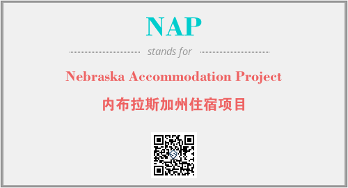 上述内容是“Nebraska Accommodation Project”作为“NAP”的缩写,解释为“内布拉斯加州住宿项目”时的信息,以及英文缩略词NAP所代表的英文单词,其对应的中文拼音、详细解释以及在英文中的流行度和相关分类、应用领域及应用示例等。