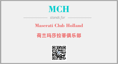 英文缩略词“MCH”经常作为“Maserati Club Holland”的英文缩写来使用,中文表示:“荷兰玛莎拉蒂俱乐部”。本文将详细介绍英文缩写词MCH所代表英文单词,其对应的中文拼音、详细解释以及在英语中的流行度。此外,还有关于缩略词MCH的分类、应用领域及相关应用示例等。