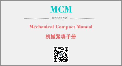 英文缩略词“MCM”经常作为“Mechanical Compact Manual”的英文缩写来使用,中文表示:“机械紧凑手册”。本文将详细介绍英文缩写词MCM所代表英文单词,其对应的中文拼音、详细解释以及在英语中的流行度。此外,还有关于缩略词MCM的分类、应用领域及相关应用示例等。