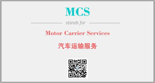 英文缩略词“MCS”经常作为“Motor Carrier Services”的英文缩写来使用,中文表示:“汽车运输服务”。本文将详细介绍英文缩写词MCS所代表英文单词,其对应的中文拼音、详细解释以及在英语中的流行度。此外,还有关于缩略词MCS的分类、应用领域及相关应用示例等。