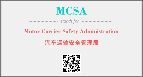 英文缩略词“MCSA”经常作为“Motor Carrier Safety Administration”的英文缩写来使用,中文表示:“汽车运输安全管理局”。本文将详细介绍英文缩写词MCSA所代表英文单词,其对应的中文拼音、详细解释以及在英语中的流行度。此外,还有关于缩略词MCSA的分类、应用领域及相关应用示例等。