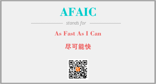 英文缩略词“AFAIC”经常作为“As Fast As I Can”的英文缩写来使用,中文表示:“尽可能快”。本文将详细介绍英文缩写词AFAIC所代表英文单词,其对应的中文拼音、详细解释以及在英语中的流行度。此外,还有关于缩略词AFAIC的分类、应用领域及相关应用示例等。