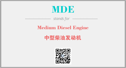 上述内容是“Medium Diesel Engine”作为“MDE”的缩写,解释为“中型柴油发动机”时的信息,以及英文缩略词MDE所代表的英文单词,其对应的中文拼音、详细解释以及在英文中的流行度和相关分类、应用领域及应用示例等。