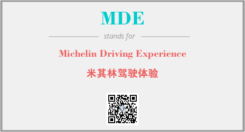 上述内容是“Michelin Driving Experience”作为“MDE”的缩写,解释为“米其林驾驶体验”时的信息,以及英文缩略词MDE所代表的英文单词,其对应的中文拼音、详细解释以及在英文中的流行度和相关分类、应用领域及应用示例等。