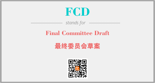 英文缩略词“FCD”经常作为“Final Committee Draft”的英文缩写来使用,中文表示:“最终委员会草案”。本文将详细介绍英文缩写词FCD所代表英文单词,其对应的中文拼音、详细解释以及在英语中的流行度。此外,还有关于缩略词FCD的分类、应用领域及相关应用示例等。