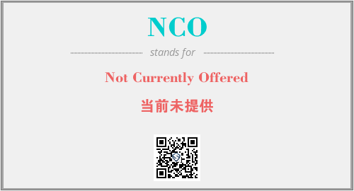 上述内容是“Not Currently Offered”作为“NCO”的缩写,解释为“当前未提供”时的信息,以及英文缩略词NCO所代表的英文单词,其对应的中文拼音、详细解释以及在英文中的流行度和相关分类、应用领域及应用示例等。