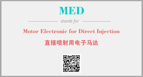 上述内容是“Motor Electronic for Direct Injection”作为“MED”的缩写,解释为“直接喷射用电子马达”时的信息,以及英文缩略词MED所代表的英文单词,其对应的中文拼音、详细解释以及在英文中的流行度和相关分类、应用领域及应用示例等。