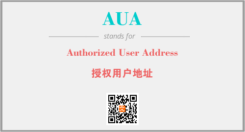 上述内容是“Authorized User Address”作为“AUA”的缩写,解释为“授权用户地址”时的信息,以及英文缩略词AUA所代表的英文单词,其对应的中文拼音、详细解释以及在英文中的流行度和相关分类、应用领域及应用示例等。