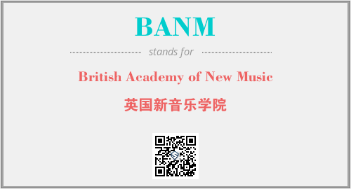 上述内容是“British Academy of New Music”作为“BANM”的缩写,解释为“英国新音乐学院”时的信息,以及英文缩略词BANM所代表的英文单词,其对应的中文拼音、详细解释以及在英文中的流行度和相关分类、应用领域及应用示例等。