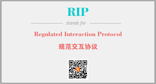 英文缩略词“RIP”经常作为“Regulated Interaction Protocol”的英文缩写来使用,中文表示:“规范交互协议”。本文将详细介绍英文缩写词RIP所代表英文单词,其对应的中文拼音、详细解释以及在英语中的流行度。此外,还有关于缩略词RIP的分类、应用领域及相关应用示例等。