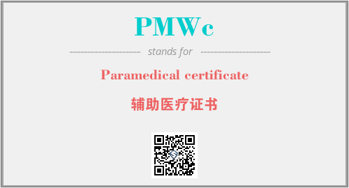 上述内容是“Paramedical certificate”作为“PMWc”的缩写,解释为“辅助医疗证书”时的信息,以及英文缩略词PMWc所代表的英文单词,其对应的中文拼音、详细解释以及在英文中的流行度和相关分类、应用领域及应用示例等。
