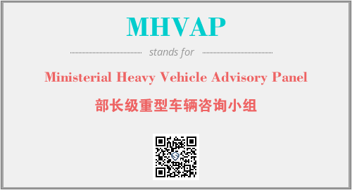 上述内容是“Ministerial Heavy Vehicle Advisory Panel”作为“MHVAP”的缩写,解释为“部长级重型车辆咨询小组”时的信息,以及英文缩略词MHVAP所代表的英文单词,其对应的中文拼音、详细解释以及在英文中的流行度和相关分类、应用领域及应用示例等。