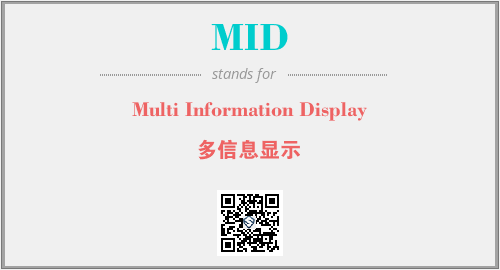 上述内容是“Multi Information Display”作为“MID”的缩写,解释为“多信息显示”时的信息,以及英文缩略词MID所代表的英文单词,其对应的中文拼音、详细解释以及在英文中的流行度和相关分类、应用领域及应用示例等。