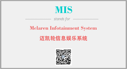上述内容是“Mclaren Infotainment System”作为“MIS”的缩写,解释为“迈凯轮信息娱乐系统”时的信息,以及英文缩略词MIS所代表的英文单词,其对应的中文拼音、详细解释以及在英文中的流行度和相关分类、应用领域及应用示例等。