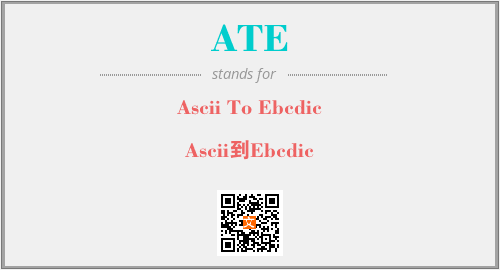 上述内容是“Ascii To Ebcdic”作为“ATE”的缩写,解释为“Ascii到Ebcdic”时的信息,以及英文缩略词ATE所代表的英文单词,其对应的中文拼音、详细解释以及在英文中的流行度和相关分类、应用领域及应用示例等。