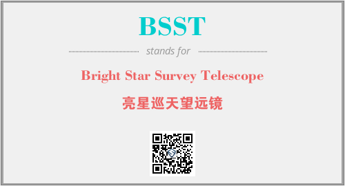 上述内容是“Bright Star Survey Telescope”作为“BSST”的缩写,解释为“亮星巡天望远镜”时的信息,以及英文缩略词BSST所代表的英文单词,其对应的中文拼音、详细解释以及在英文中的流行度和相关分类、应用领域及应用示例等。